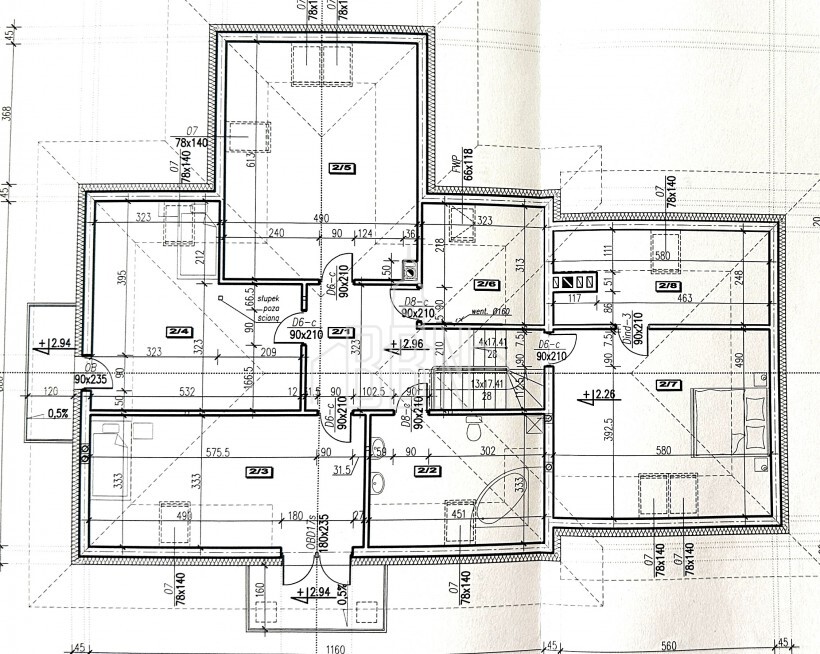 4 pokoje (15,78 m2, 15,99 m2, 17,78 m2, 18,09 m2), hall ze schodami - 16,10 m2, łazienka - 8,81 m2, pralnia - 4,40 m2, garderoba - 6,01 m2